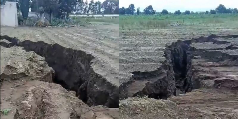 Enormes grietas de hasta 50 metros de profundidad aparecieron en campos de cultivo de San Salvador Atenco, Estado de México, por el desbordamiento del Río Papalotla.