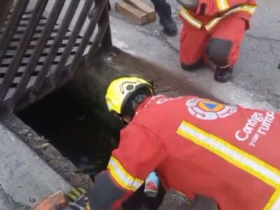 Logran rescatar a perrito atrapado en alcantarilla en Puebla