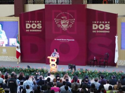 Al compás de la “Marcha Imperial” de Star Wars, la alcaldesa de Playas de Rosarito, Baja California, Araceli Brown hizo su entrada para rendir su segundo informe ...