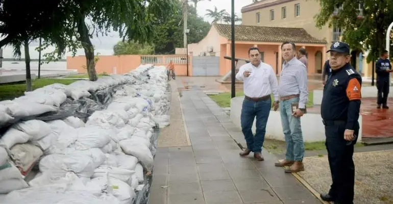 Autoridades y ciudadanos de Tlacotalpan contienen inundación