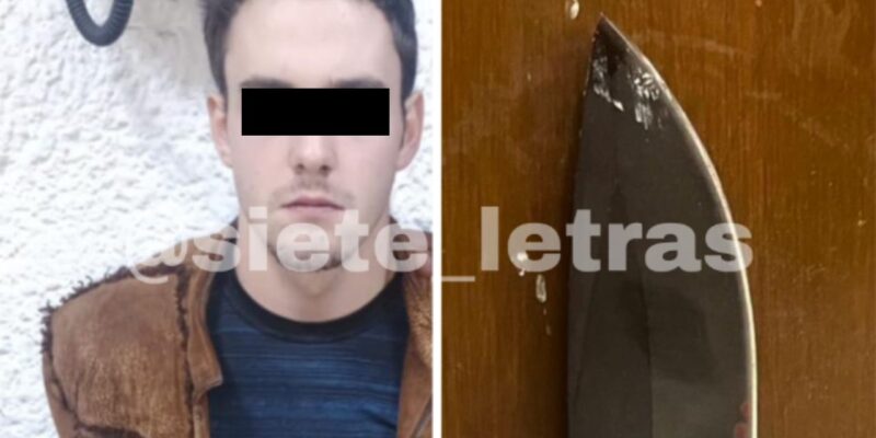 Vecinos del lugar se percataron de la agresión y llamaron a las autoridades, por lo que oficiales de la capital arrobaron al lugar para someter al sujeto, mientras que se les resguardó un arma blanca.