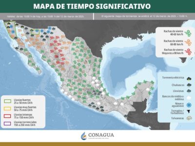 Se pronostican rachas de viento de muy fuertes a intensas en la porción norte de México
