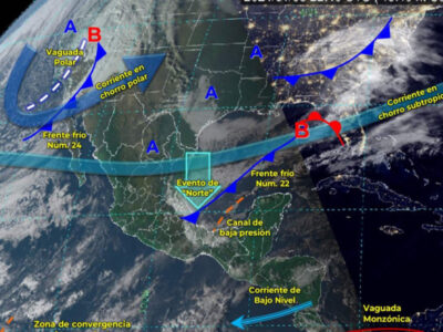 El Servicio Meteorológico Nacional (SMN) dio a conocer que el frente frío número 24, que se desplazará sobre el noroeste y norte de ...