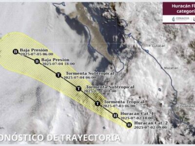El pronóstico del clima para México, este 1 de julio de 2025, indica que la tormenta tropical Flossie se intensificará a huracán categoría ...