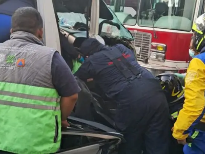 Mujer queda prensada tras choque entre camión y combi en Insurgentes Norte