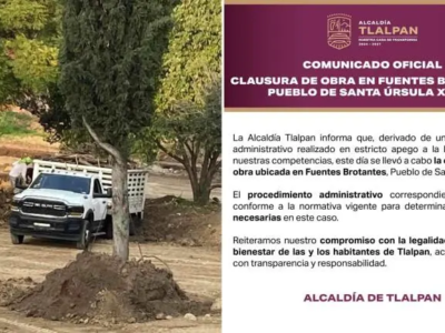 La Alcaldía Tlalpan informó que este viernes clausuró una obra en el Pueblo de Santa Úrsula Xitla, en la zona de Fuentes Brotantes, como ...