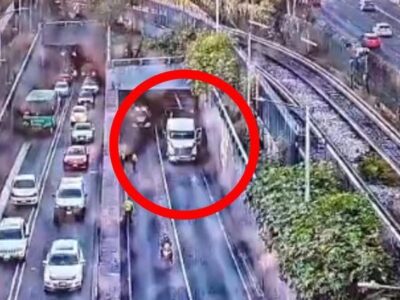 Tráiler se atora en el desnivel de Taxqueña: afecta vialidad en Calzada de Tlalpan