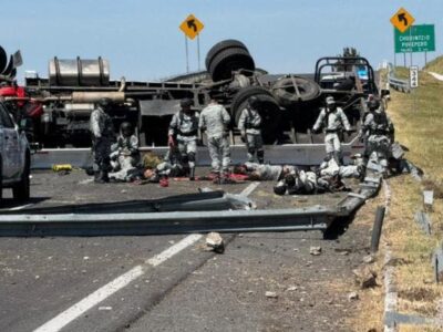 Camión de la GN vuelca en autopista de Michoacán; se reportan tres muertos y 20 heridos