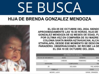 Piden ayuda para localizar a bebé desparecida en Iztapalapa