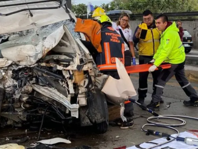 Aparatoso choque en autopista México-Puebla; tres personas se reportan graves