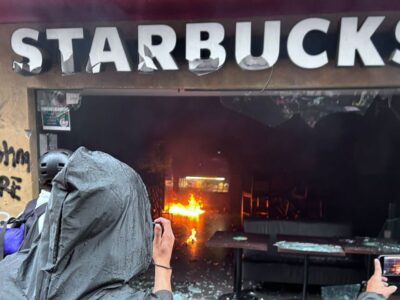 Ayotzinapa 10 años: Encapuchados realizan pintas y destrozos en comercios