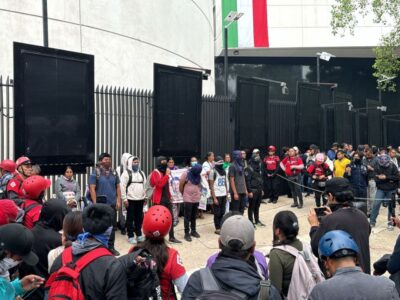 Normalistas de Ayotzinapa lanzan petardos al Senado durante protestas