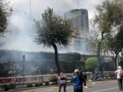Lanzan explosivos a Segob durante protesta por 10 años de caso Ayotzinapa