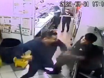 En redes sociales denunciaron la agresión de un sujeto hacia un joven en el interior de una cocina de un restaurante de comida ...