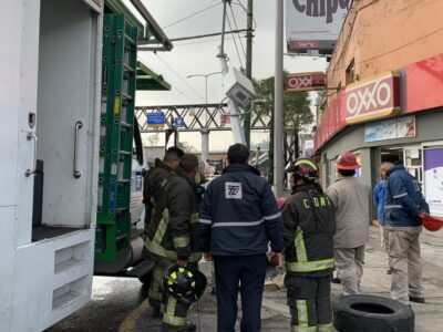 Tráiler impacta poste del C5, conductor se da a la fuga y lo detienen en Venustiano Carranza