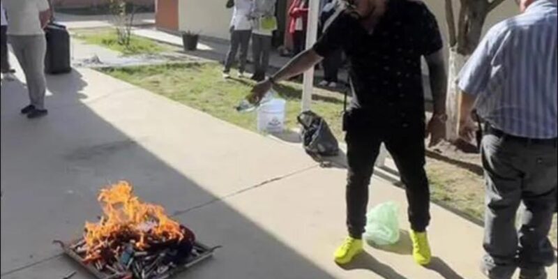 “También llevamos a cabo la quema y destrucción de artículos decomisados que se encuentran prohibidos en el reglamento escolar, mismos que todos los padres de familia aceptaron y dieron su consentimiento”, se leía en la publicación, la cual fue eliminada posteriormente.