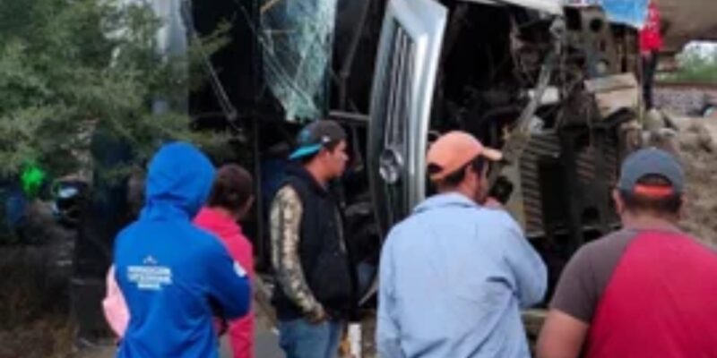 El fatídico suceso tuvo lugar en la localidad de San Rafael durante la mañana de este miércoles. El camión de la línea “Flecha Azul” intentó cruzar las vías del tren mientras el ferrocarril de “Ferromex” se aproximaba, lo que provocó la colisión y el vuelco del autobús.