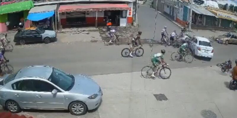 Los ciclistas se dirigían en dirección al automóvil por lo que al menos cuatro de ellos se estrellan, mientras que el resto logran esquivar el accidente.