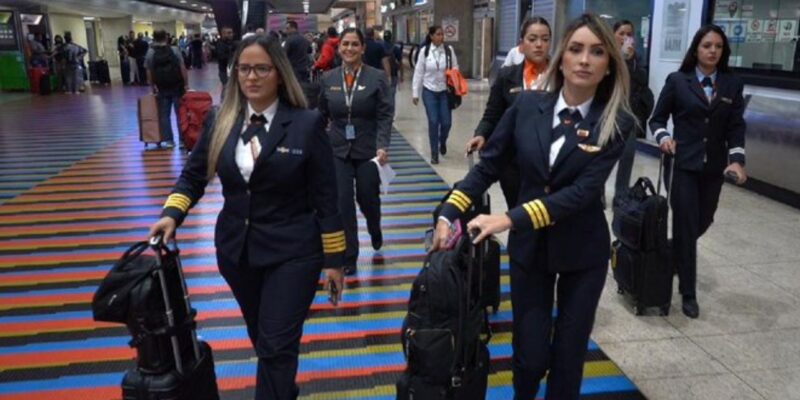 Andrea Palacio es la capitana que comandó el avión que llegó al caribe mexicano , acompañada por Jasmín Acosta.