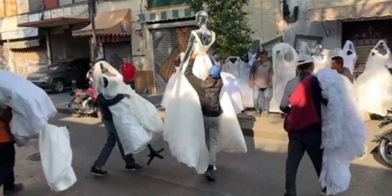 En imágenes y videos difundidos en redes sociales se podía observar a cerca de 50 trabajadores sacar los vestidos de novia, así como maniquíes a la calle.