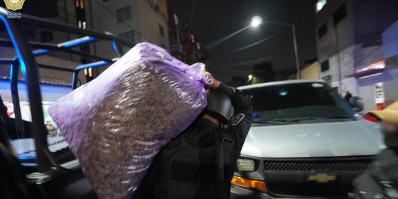 La policía de la Ciudad de México incautó 350 kilos de marihuana durante un operativo en la alcaldía Venustiano Carranza, donde ejecutaron dos órdenes de cateo.
