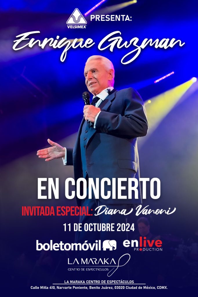 El ícono del rock mexicano Enrique Guzmán se prepara para encender los escenarios una vez más este viernes 11 de octubre, en el Centro de Espectáculos La Maraka de la Ciudad de México. Esta presentación especial no solo marca el regreso de Guzmán, sino que también lo unirá con la talentosa cantante Diana Vanoni como invitada especial, creando una velada inolvidable que promete emocionar a generaciones de fans. Para aquellos interesados en asistir a este evento inolvidable, los boletos ya están a la venta a través del sistema Boletomovil en https://lc.cx/9eQ7Wg y en taquillas del inmueble.