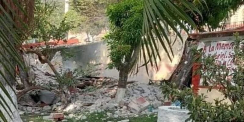 En imágenes difundidas en redes sociales se puede observa que la explosión provocó que una de las bardas de la Normal Raúl Isidro Burgos colapsara, mientras que otra foto muestran la gran columna de humo que se formó en la zona.