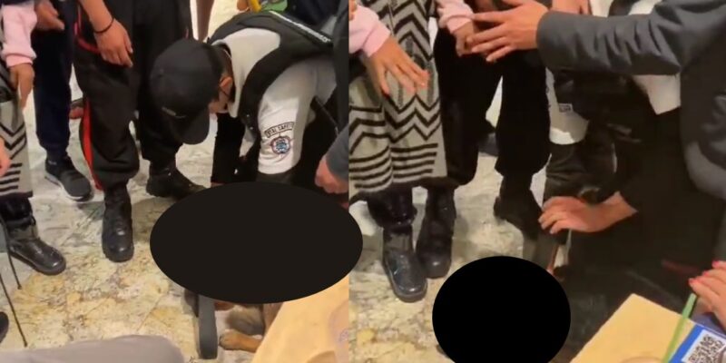 De acuerdo al periodista Jorge Becerril, el perrito ingresó al centro comercial para refugiarse de la lluvia. Testigos del hecho señalaron a los guardias que “no hay necesidad, lo estas lastimando”.
