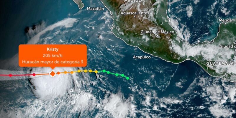 El Servicio Meteorológico Nacional (SMN) informó que el huracán “Kristy” se intensificó a categoría 3 en el océano Pacífico, pero ya no representa una amenaza para México.