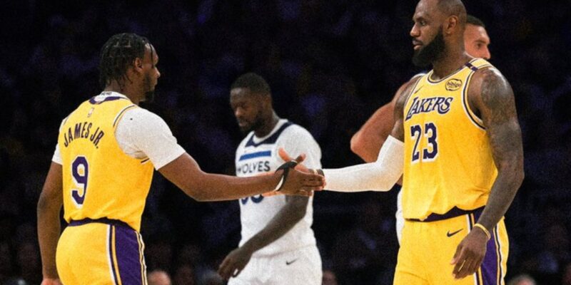 James salió como titular y, tras uno de sus descansos en el banco, el técnico JJ Redick lo mandó de vuelta a la cancha junto a Bronny, dejando una imagen para la historia de la liga norteamericana de básquet.