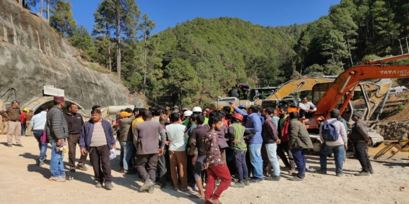 Las excavadoras estuvieron retirando escombros desde el domingo del lugar, situado en el estado himalayo de Uttarakhand, para crear un túnel de escape para los trabajadores, que siguen vivos.