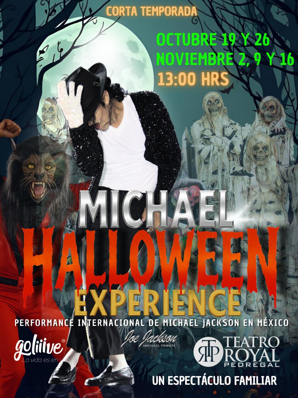 Michael Halloween Experience se presenta con funciones los días 19 y 26 de octubre, así como el 2, 9 y 16 de noviembre en el Teatro Royal del Pedregal, ubicado en Boulevard Adolfo Ruiz Cortines 4363, Colonia Jardines en la Montaña, Tlalpan. Boletos a la venta a través del sistema Go Liiive.