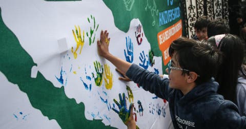 Los menores expresaron su demanda plasmando la imagen de sus manos en un lienzo que entregaron al Comisionado de la ONU en México.