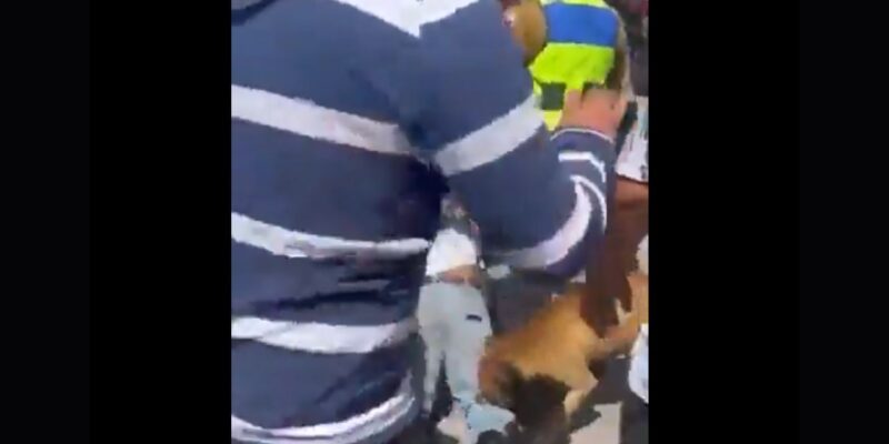 En los segundos que dura la grabación se observa que el can no suelta a su presa en ningún momento, hasta que finalmente, los policías suben al criminal en la batea de una patrulla.