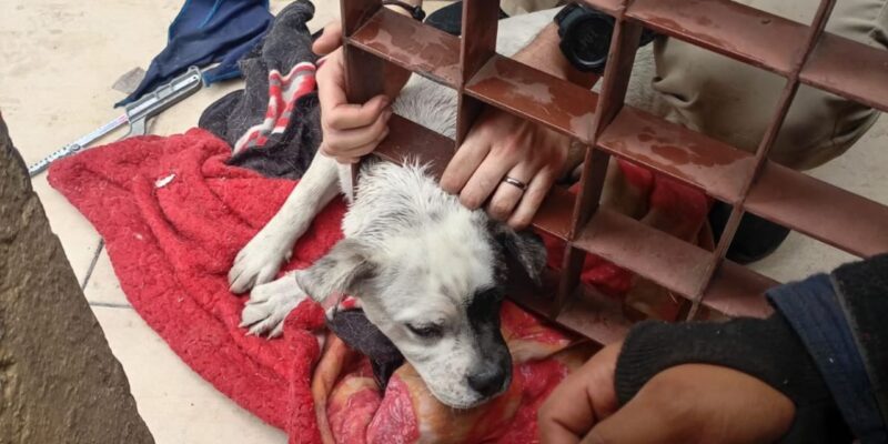Los hechos ocurrieron en un inmueble ubicado en la Carretera Federal México-Toluca, en la colonia Contadero, alcaldía Cuajimalpa, donde el lomito de talla mediana se atoró de la cabeza en una puerta.