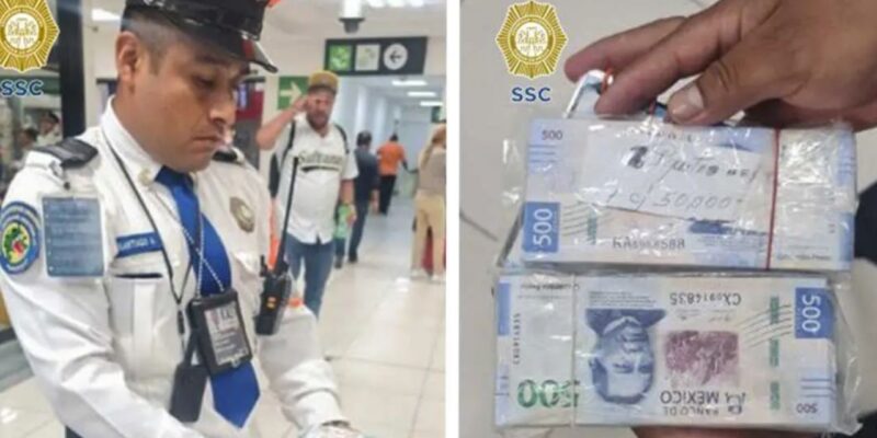 De acuerdo al informe de las autoridades, el pasado domingo 16 de julio, un elemento de seguridad encontró los fajos de billetes en el Aeropuerto Internacional de la Ciudad de México, por lo que reportó el hallazgo al centro de monitoreo.