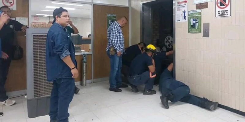 Equipos de emergencia acudieron a la clínica número 7 del Instituto Mexicano del Seguro Social (IMSS) en Monclova, Coahuila, para rescatar a siete personas que se quedaron atrapadas en un elevador.