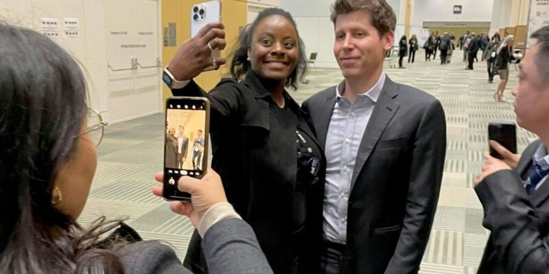 A la salida de la sala de conferencias, Altman fue rodeado por simpatizantes que buscaban tomarse fotos con él.