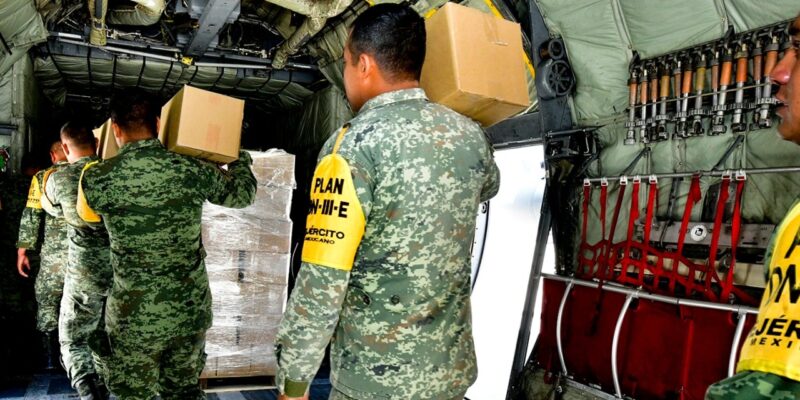 Adicionalmente, un avión C-130 “Hércules” de la Fuerza Aérea Mexicana ha trasladado personal, despensas, material y equipo desde el Centro Estratégico de Acopio de la Sedena en la Base Aérea Militar No. 1 en Santa Lucía, Estado de México, hasta el Aeropuerto Internacional de Chetumal, Quintana Roo.