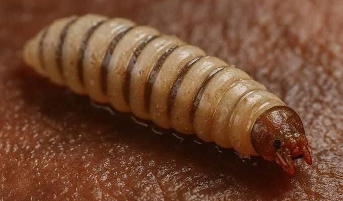 Las moscas ponen sus huevos en heridas, o incluso en orificios como la nariz o la boca, y las larvas resultantes se desarrollan en el tejido vivo del huésped.