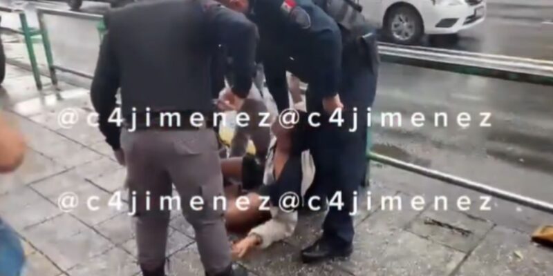 Segundos después se puede ver que lo detienen en la entrada, sobre Eje Central Lázaro Cárdenas, pero cuando pretendían seguir con los golpes, un policía de la Secretaría de Seguridad Ciudadana (SSC) interviene.