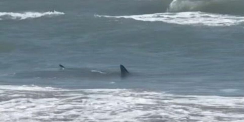 En videos difundidos en X, antes Twitter, se puede observar a un tiburón nadando cerca de la playa, después del ataque.