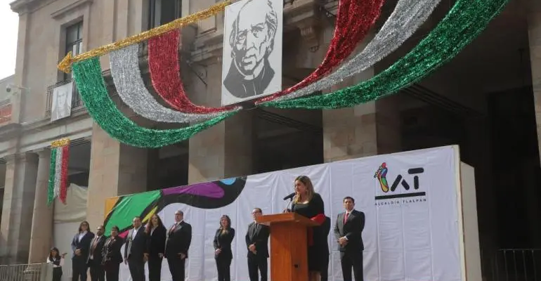 La alcaldesa Alfa González lideró la conmemoración del 214 aniversario del inicio de la Independencia de México en la explanada de la Alcaldía Tlalpan.