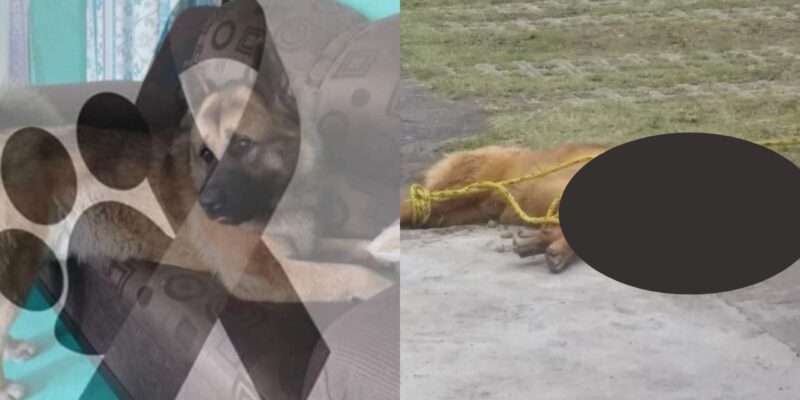 En una imagen se logra apreciar al canino amarrado con unas cuerdas, el cual de acuerdo a redes sociales, “Kuko” era perro guía de un señor de la tercera edad que padecía discapacidad visual y auditiva.